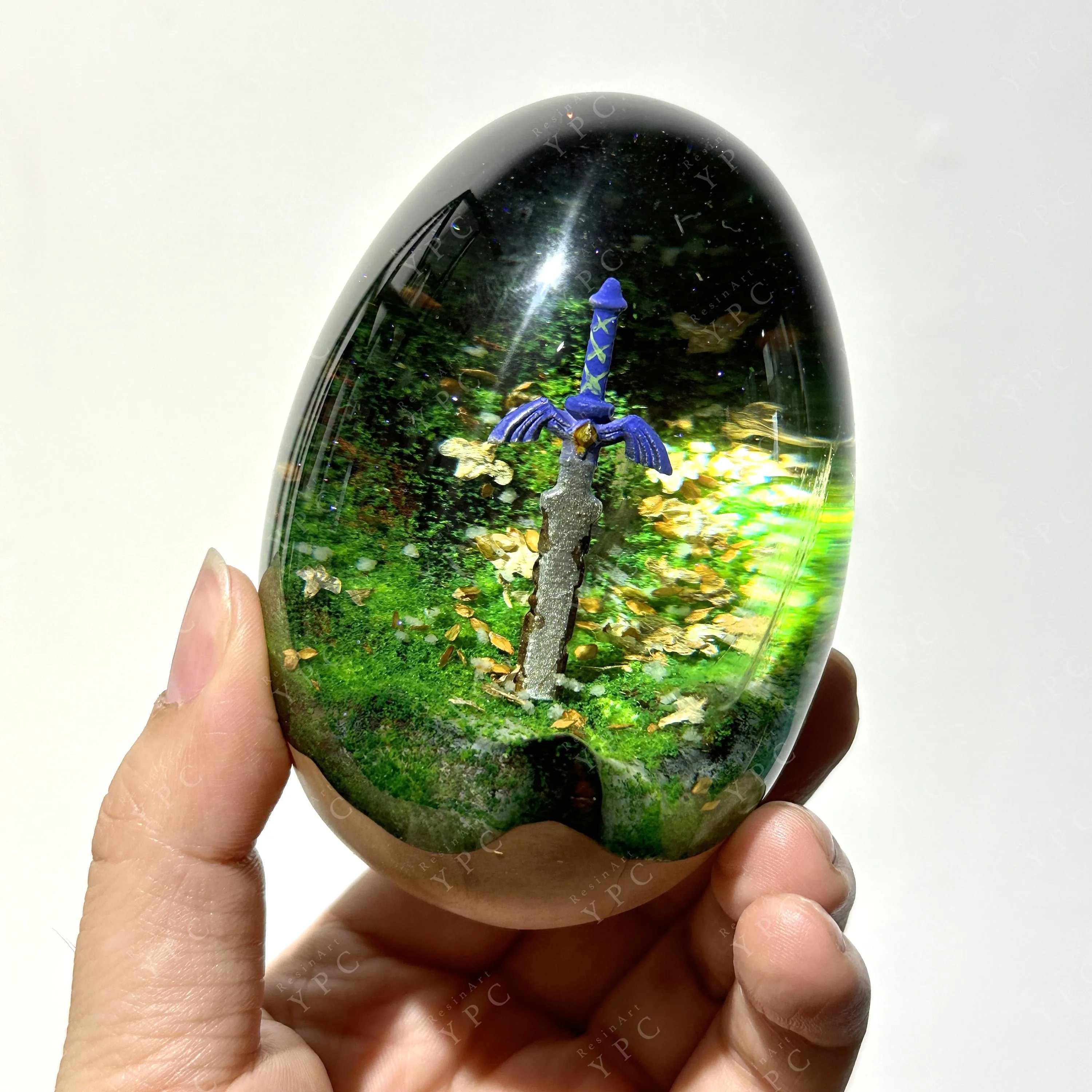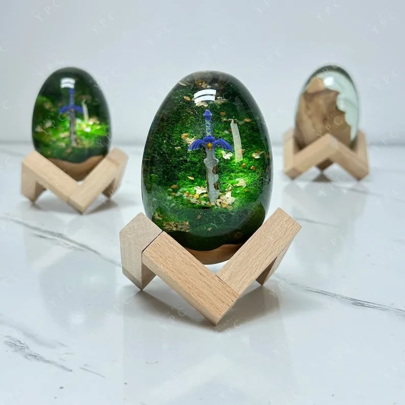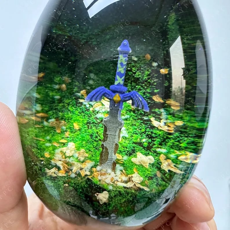 Inspired by the legendary sword in a popular video game, our dragon egg with rusty sword is a perfect gift for fantasy and adventure enthusiasts. It can be used as a decorative item or a conversation starter, and will certainly add a touch of magic to any space.