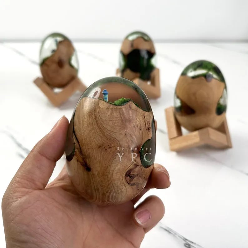 *The egg comes with a wooden stand!